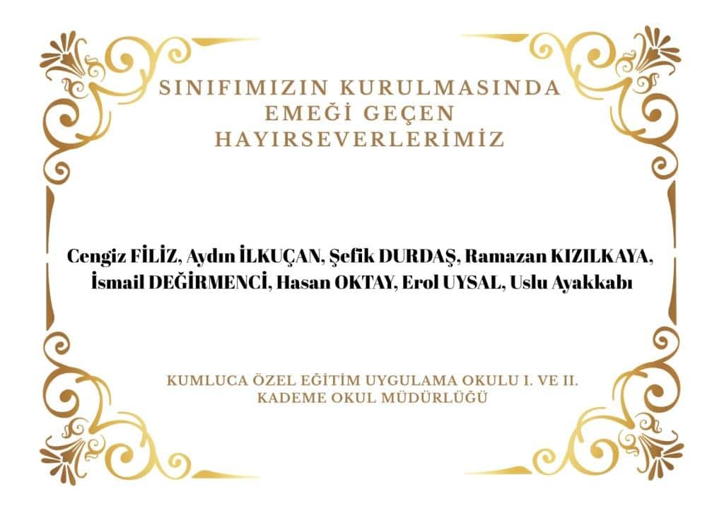 SINIFLARIMIZIN KURULMASINDA EMEĞİ GEÇEN HAYIRSERVERLERİMİZE TEŞEKKÜR EDERİZ.